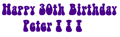 To celebrate this milestone, we (his friends and family) have set up this site to as a retrospective of his life so far and a preview of a brilliant future. SHHHHH!! Peter won't know of this site until his birthday, so please don't tell him or ruin the surprise. If you would like to contribute stories or photos please email Bronwyn. |